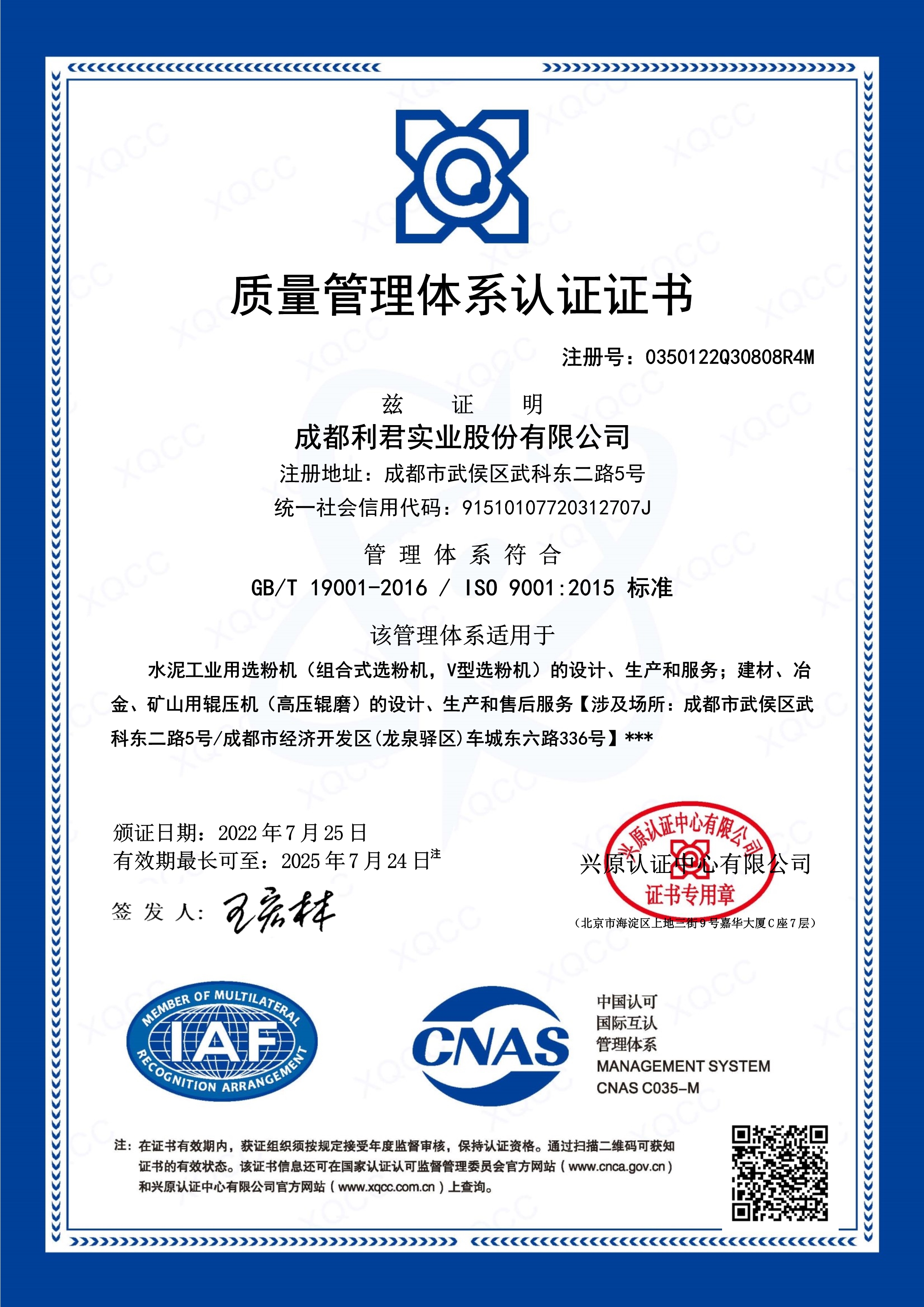 公司通過了ISO9001質(zhì)量管理體系、IOS14001環(huán)境管理體系和CE認證,積極推行全面質(zhì)量管理。先后獲得了“中國建材機械工業(yè)企業(yè)信用評價AAA級”、“四川省質(zhì)量管理先進企業(yè)”、“四川省建設(shè)創(chuàng)新型企業(yè)”、“四川省質(zhì)量信用AAA用戶”等多項榮譽和資質(zhì)證書。