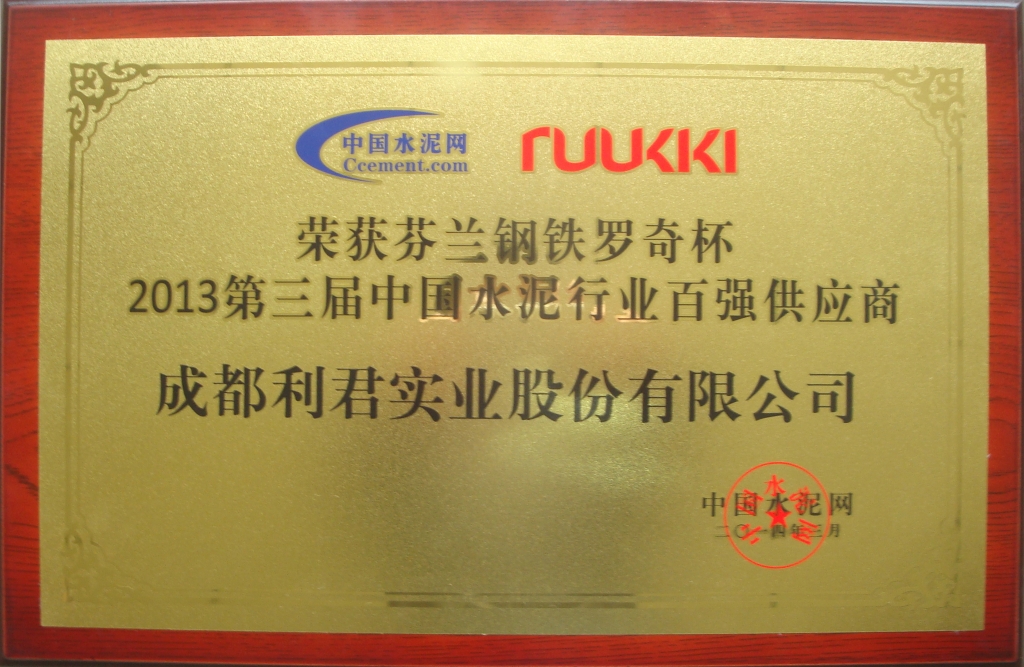 2014年3月公司榮獲第三屆中國水泥行業(yè)百強(qiáng)供應(yīng)商。